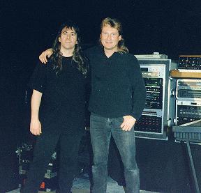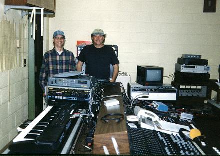 - Photo #1: Larry Choley (left) and Jody Kennedy with synthesizers in the control room