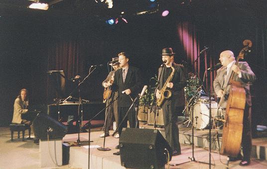 - Photo #2: Live 4/17/98. Left to right: John Ginty, Joe Wilkinson, N.C., John Hummel, Dave DiCastro
