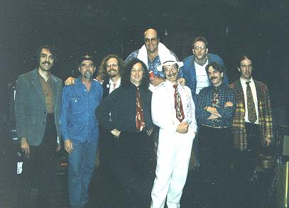 Front row, l to r: Greg Biscontini, Chuck Musto, Dewey Vasquez, Dan "Dex" Armbruster, Tom Hamilton, Nick Driscoll, Jim Buckley, George Graham. Back row: Doctor Montzingo, Marko Marcinko, Jamie Novak. (Jon Searfoss and Gary Rixner managed to escape before the photo was taken.)